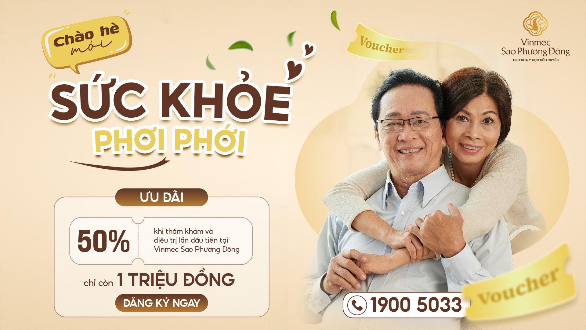 Mùa hè là thời điểm lý tưởng để làm mới cơ thể và tinh thần. Với ưu đãi chỉ còn 1 TRIỆU ĐỒNG tại Vinmec Sao Phương Đông, bạn sẽ được chăm sóc sức khỏe toàn diện, từ thăm khám chuyên sâu đến các liệu pháp trị liệu hiệu quả. Đừng để những cơn đau nhức hay mệt mỏi cản trở niềm vui mùa hè của bạn!