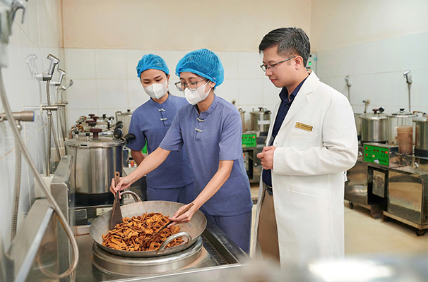 3. Bào chế theo quy chuẩn thủ công truyền thốngCông đoạn bào chế đôi khi rất phức tạp, để đảm bảo phát huy được công năng tính vị Đông Dược. Bởi vậy, đội ngũ Vinmec Sao Phương Đông luôn phải kiên trì, đặc biệt không bớt xén quy trình, rút ngắn thời gian, mà phải tuân thủ đầy đủ, tỉ mỉ theo dõi từng công đoạn bào chế dược liệu.